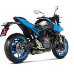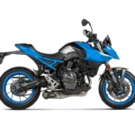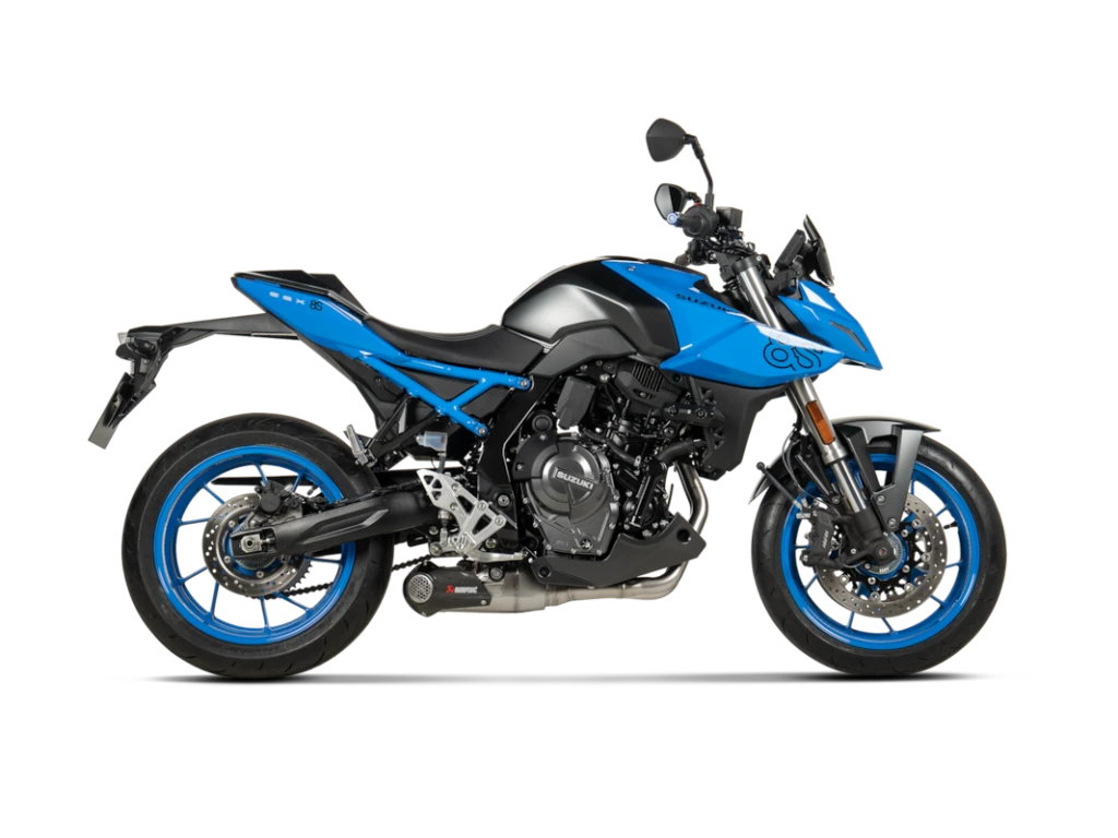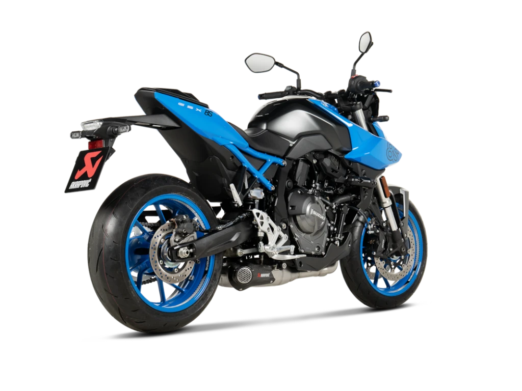 Son installation est plug-and-play, sans reprogrammation. L’accent a été mis sur une réponse optimale de l’accélérateur et des performances optimales lors du développement, ce qui a permis une augmentation de puissance de 1,8 kW (2,5 ch) à 9 500 tr/min et un gain de couple de 1,4 Nm à 5 500 tr/min par rapport à une Suzuki GSX-8S équipée d’un système d’échappement d’origine, testée sur le banc d’essai Akrapovič interne. Le poids est réduit de 29,1 % (2,2 kg) par rapport au système d’échappement d’origine. Offrant une sonorité profonde et sportive , ce système complet est homologué CE/ECE et conforme à la norme Euro 5+ . Il a été conçu pour pouvoir être monté en combinaison avec le kit de valises souples Suzuki d’origine.